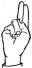 На ћирилици написано ВИОЛЕТА ЈОВАНЧЕВИЋ састоји се из 17 слова [?]. Исписано ћириличном једноручном азбуком за глувонеме: